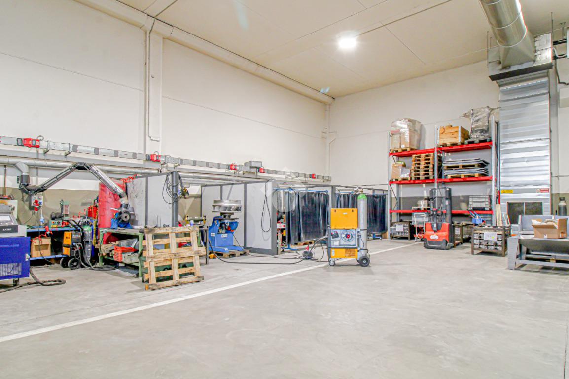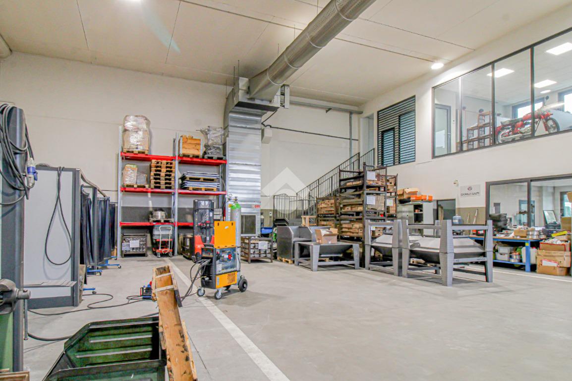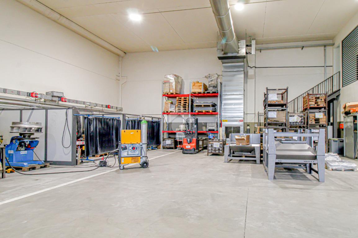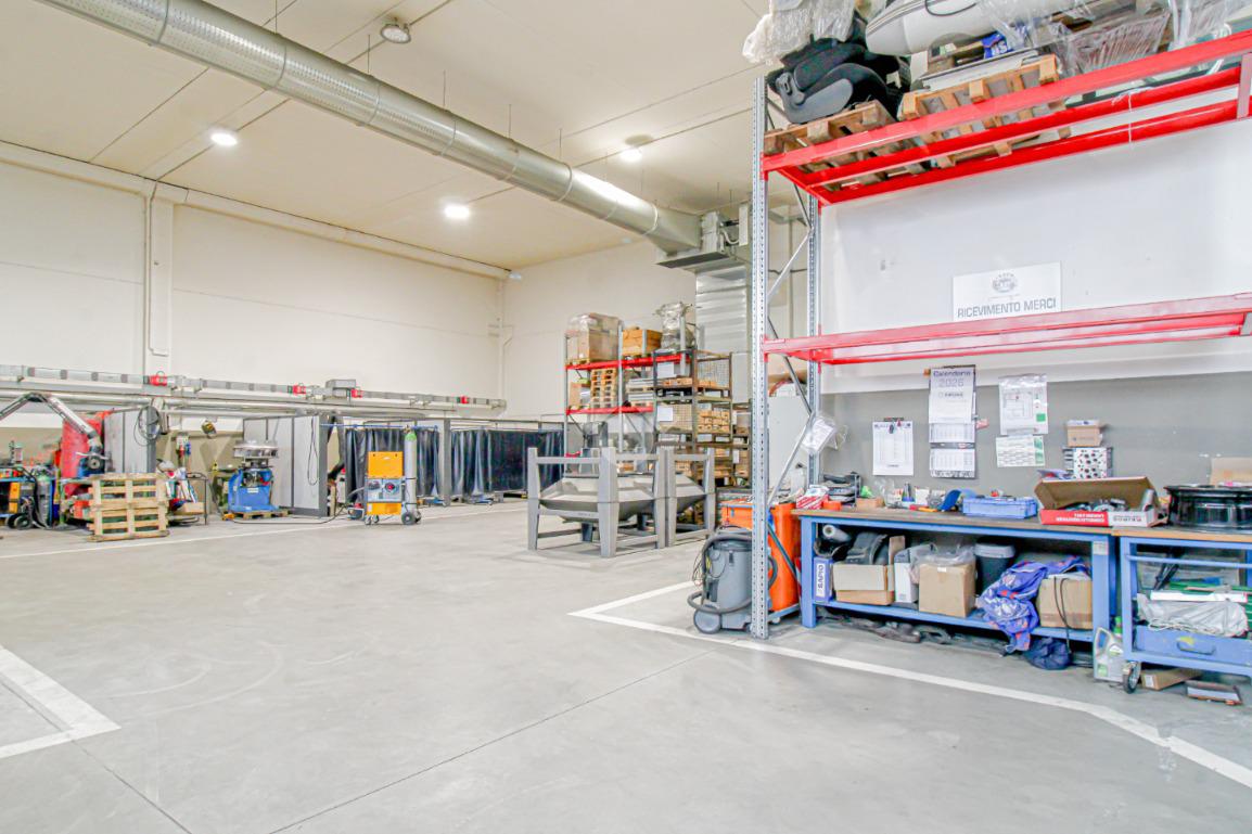 Il capannone, della superficie totale di 400 mq, si sviluppa su un unico livello e si presenta come un ampio open space con un’altezza interna di 7 metri. L’immobile è dotato dei principali impianti: impianto elettrico, impianto di illuminazione, impianto di riscaldamento, condizionamento caldo/freddo negli uffici, impianto d’allarme, impianto di aria compressa e impianto fotovoltaico da 30 kW. Sono presenti tre servizi igienici completi di spogliatoi con docce. All’interno del capannone si trovano 50 mq di uffici al piano terra e 50 mq di uffici al piano primo. L’accesso è agevolato da un portone di 4,5 metri e da un accesso carraio. Completa la proprietà un’area esterna esclusiva di circa 100 mq.