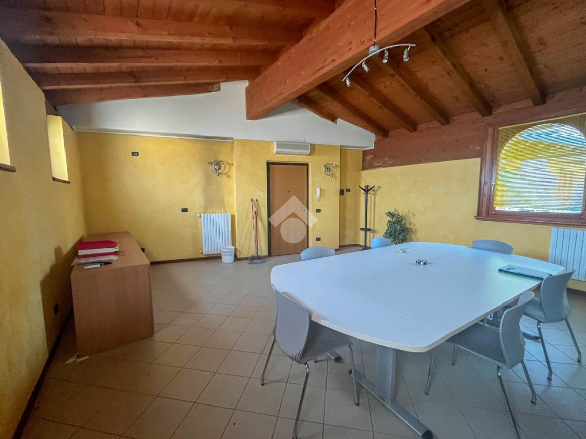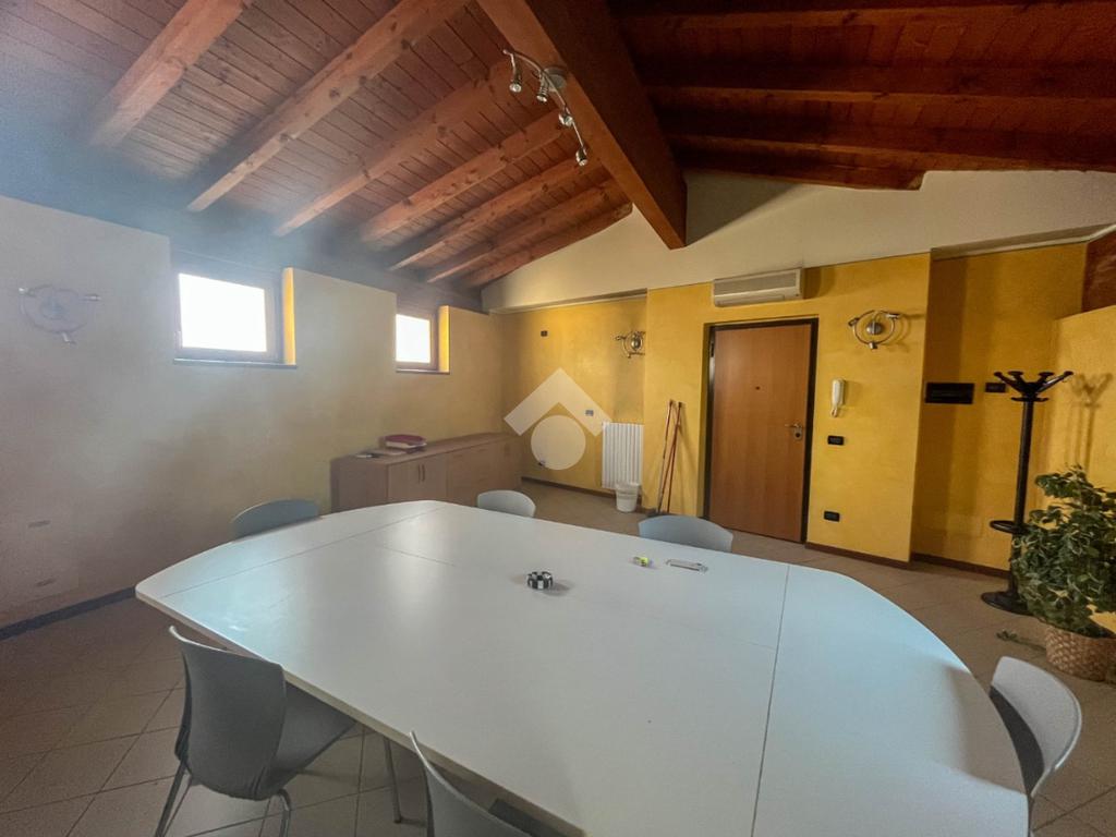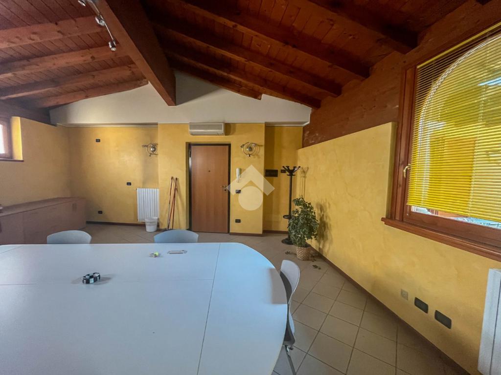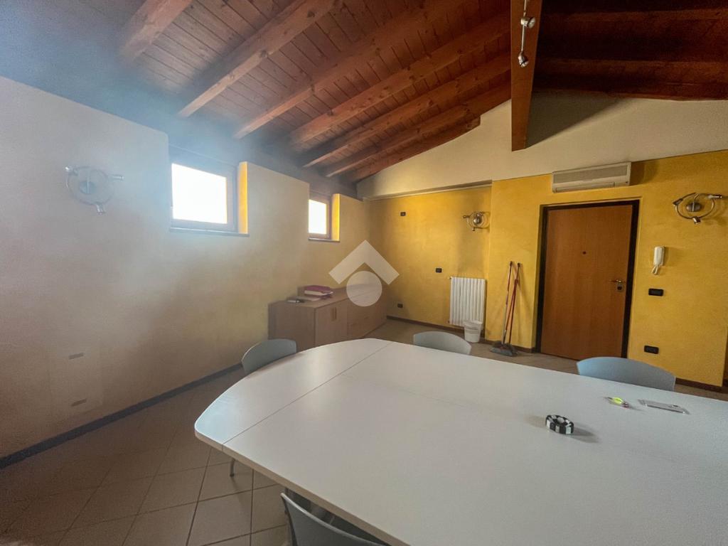 La soluzione proposta in locazione dispone di una superficie calpestabile di circa 70 metri quadrati che si presenta interamente disposta al secondo piano. Lo spazio si presenta come un ampio open space. L'immobile è provvisto degli impianti elettrico, di illuminazione e di riscaldamento/condizionamento ad aria; è inoltre presente un servizio igienico privato.