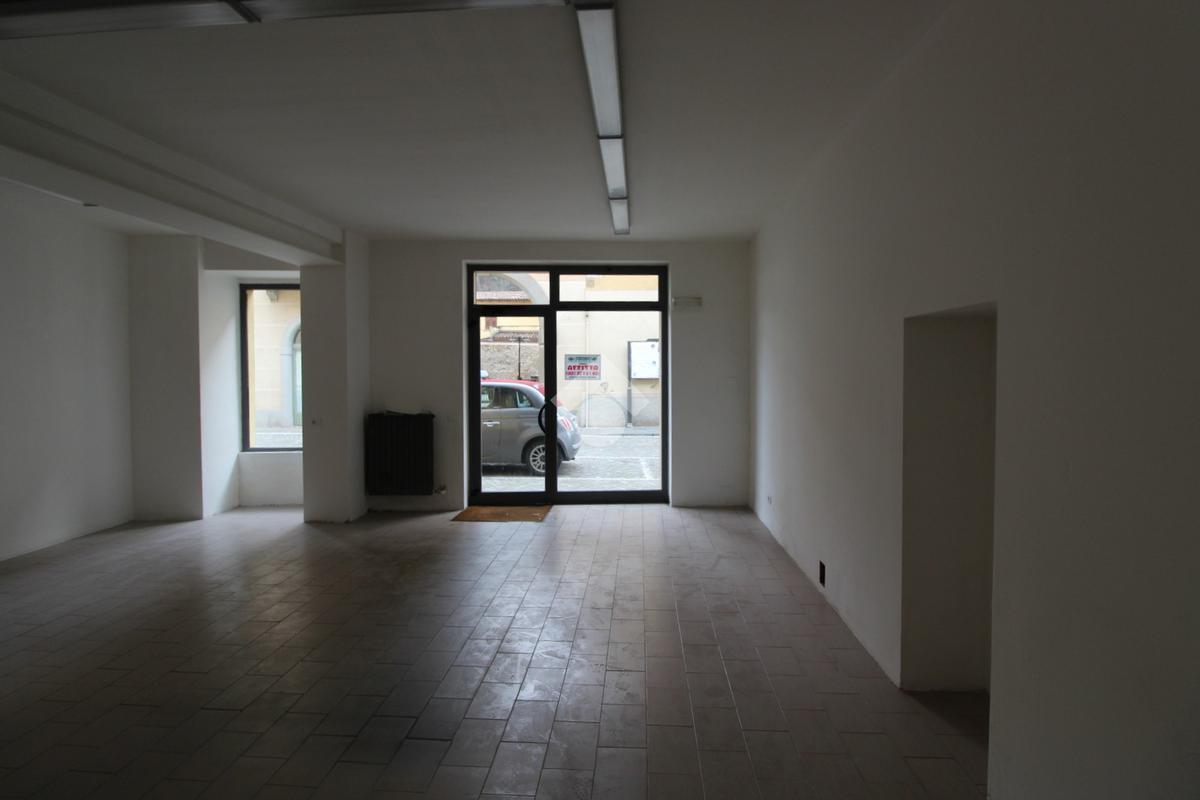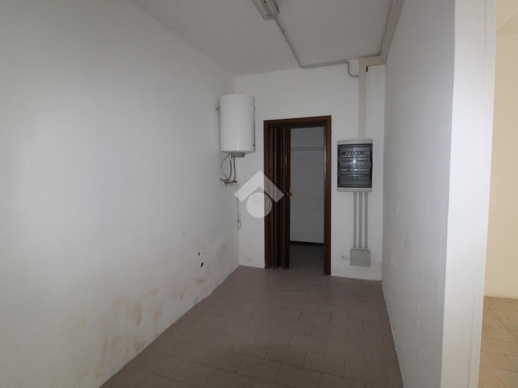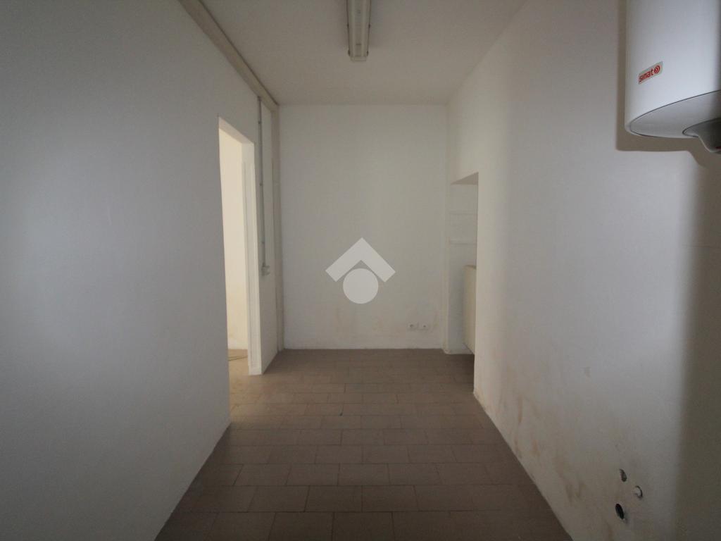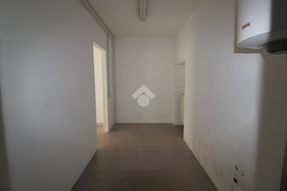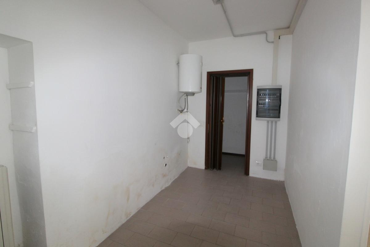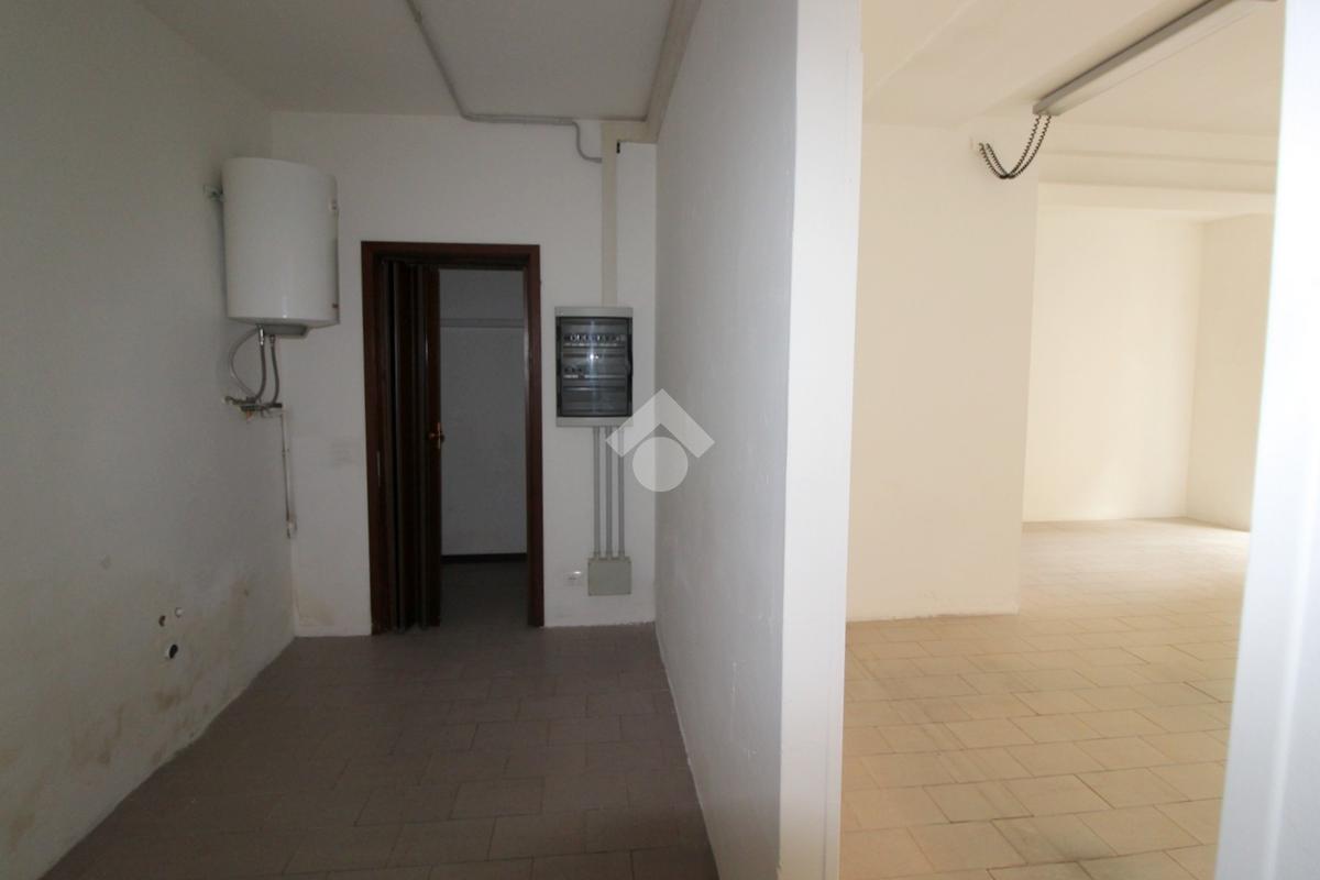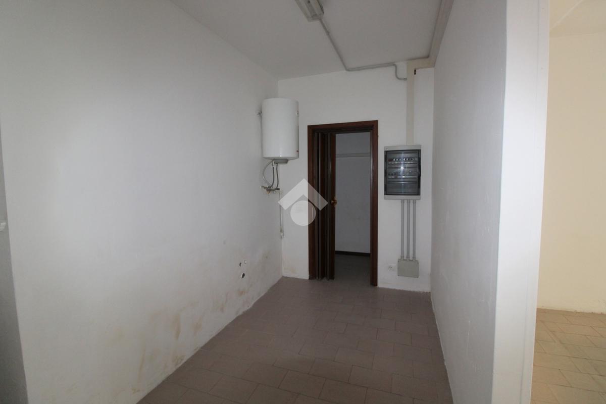 L'immobile si presenta con una vetrina dove è inserita la porta d'ingresso e con un'altro specchio espositivo posizionato accanto. Internamente la superficie della pianta è sviluppata in un unico grande ambiente dalla forma rettangolare, ampiamente sfruttabile. La soluzione è completa da un comodo locale adibito a magazzino e da un servizio igienico privato. L'ufficio è provvisto degli impianti elettrico, di illuminazione, di riscaldamento e la canna fumaria.