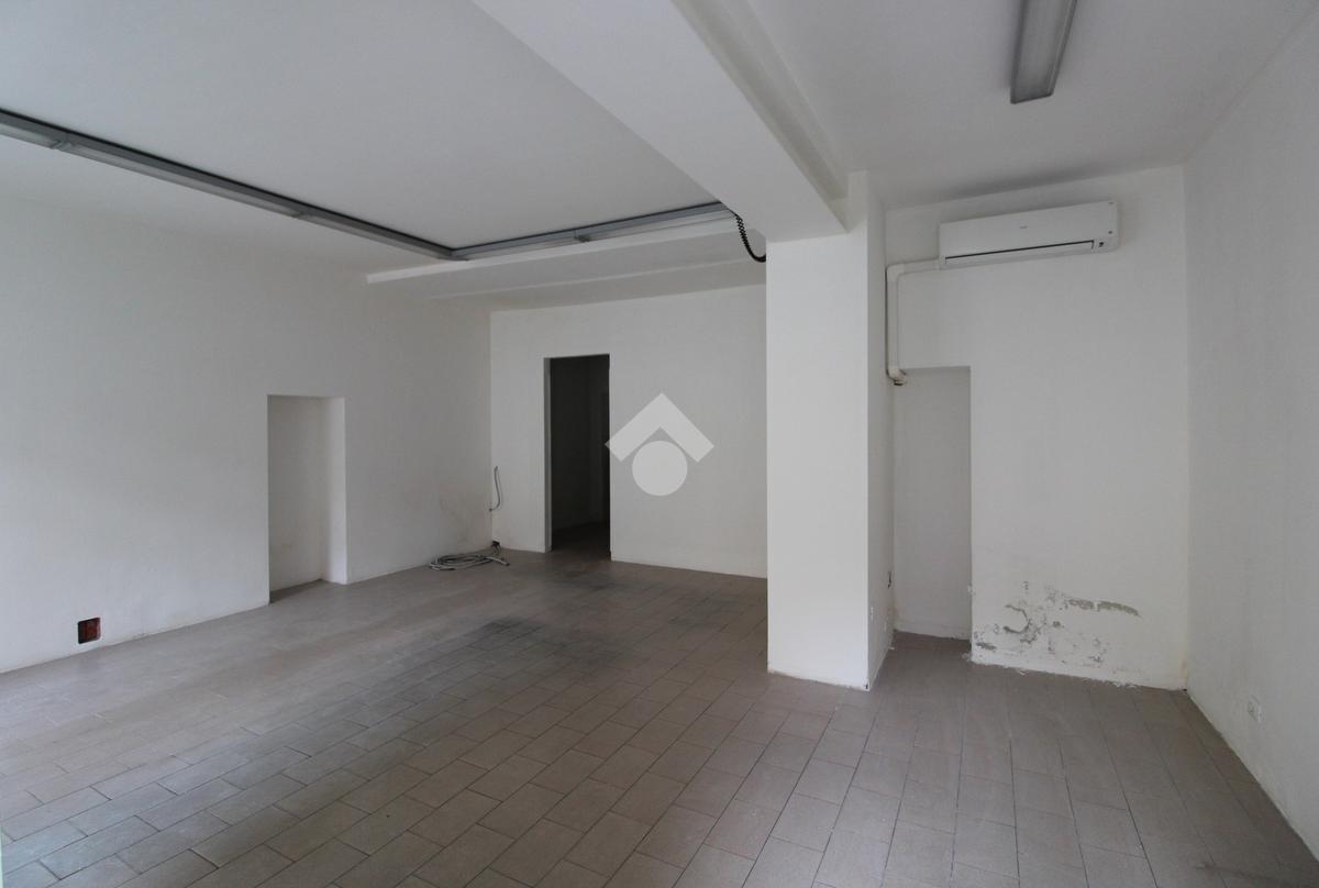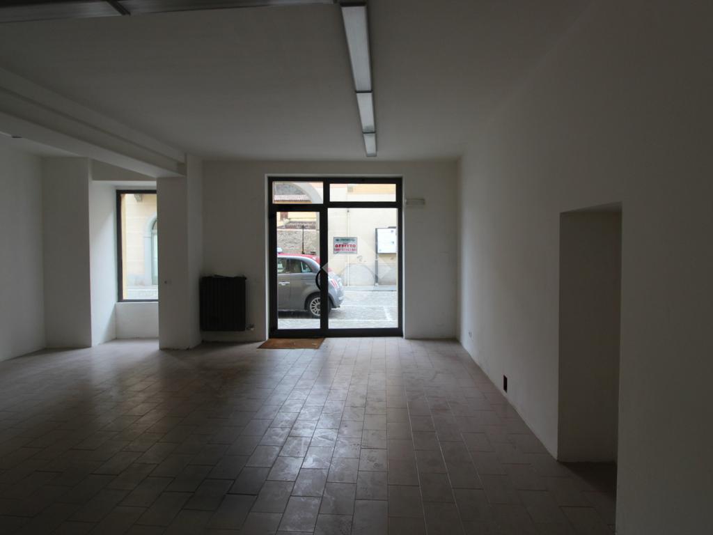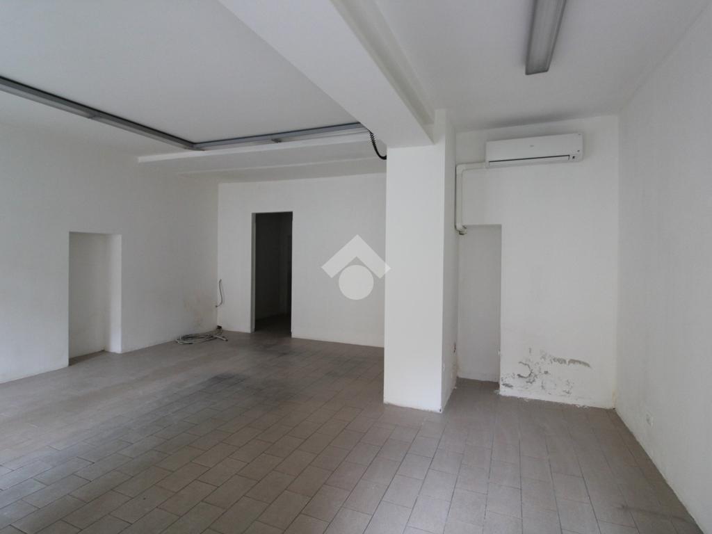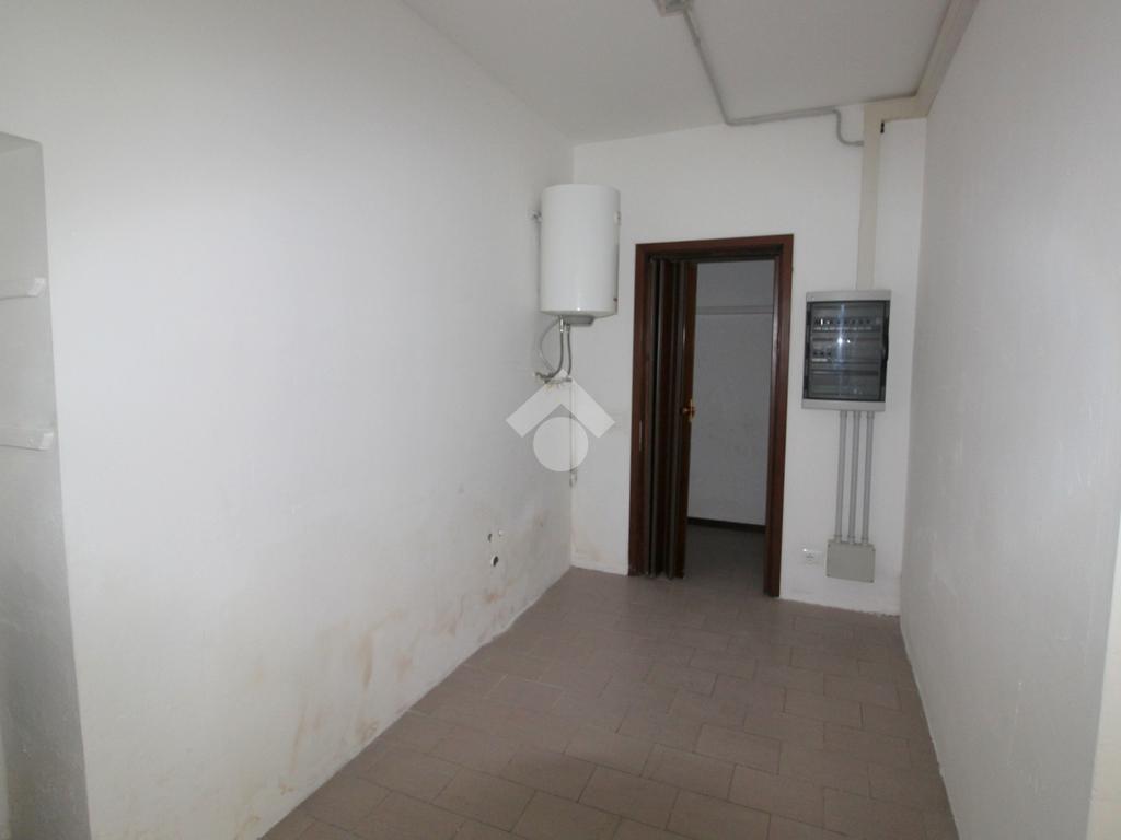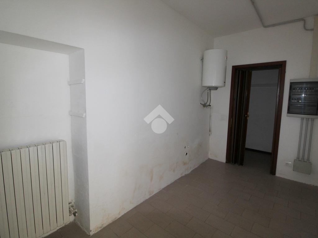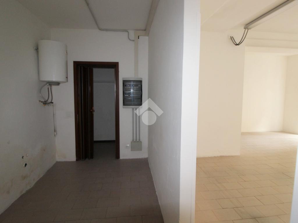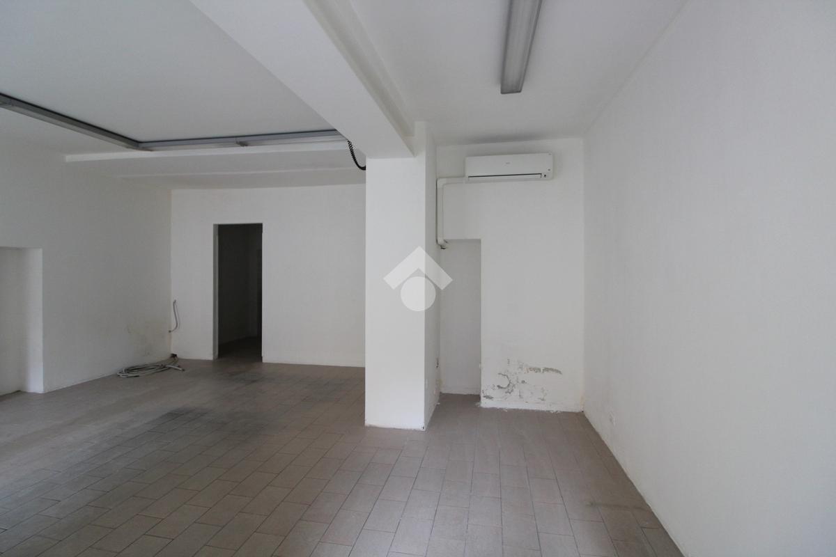 L'immobile si presenta con una vetrina dove è inserita la porta d'ingresso e con un'altro specchio espositivo posizionato accanto. Internamente la superficie della pianta è sviluppata in un unico grande ambiente dalla forma rettangolare, ampiamente sfruttabile. La soluzione è completa da un comodo locale adibito a magazzino e da un servizio igienico privato. L'ufficio è provvisto degli impianti elettrico, di illuminazione, di riscaldamento e la canna fumaria.