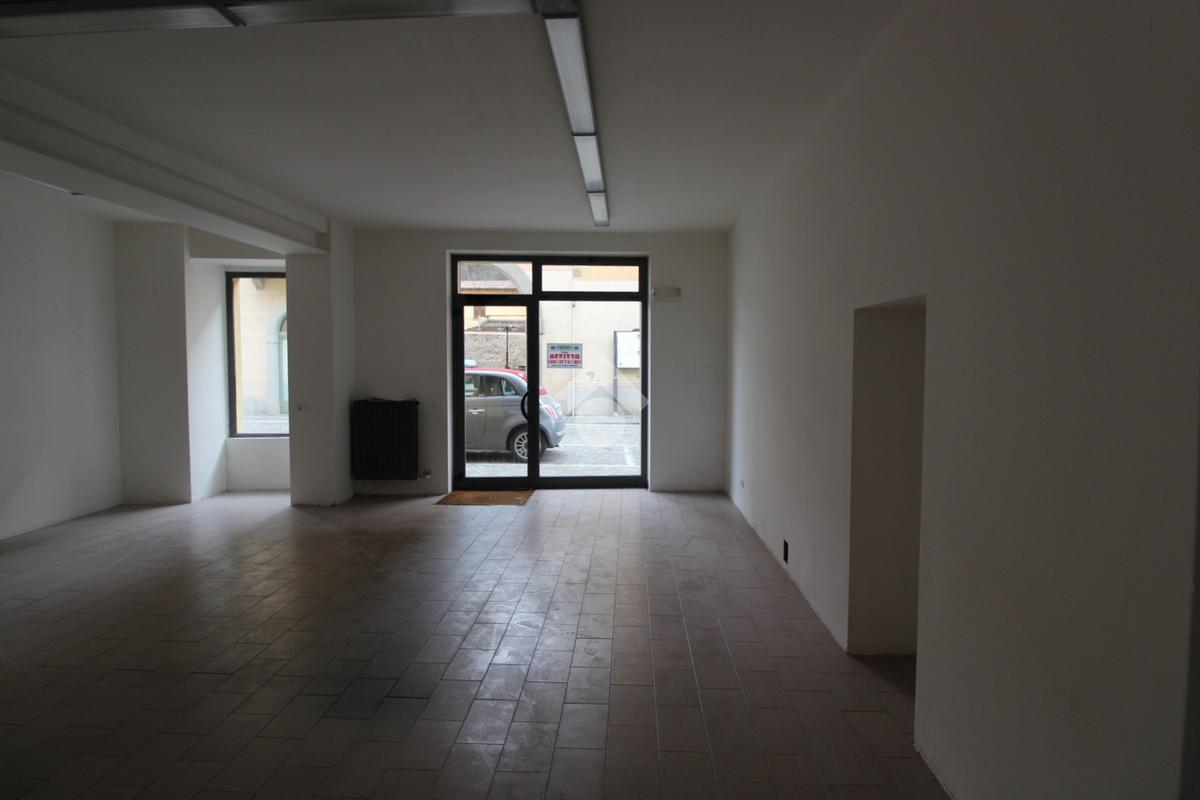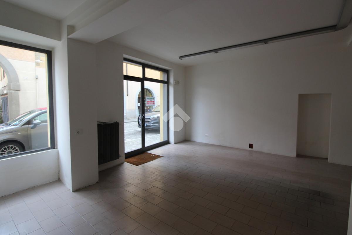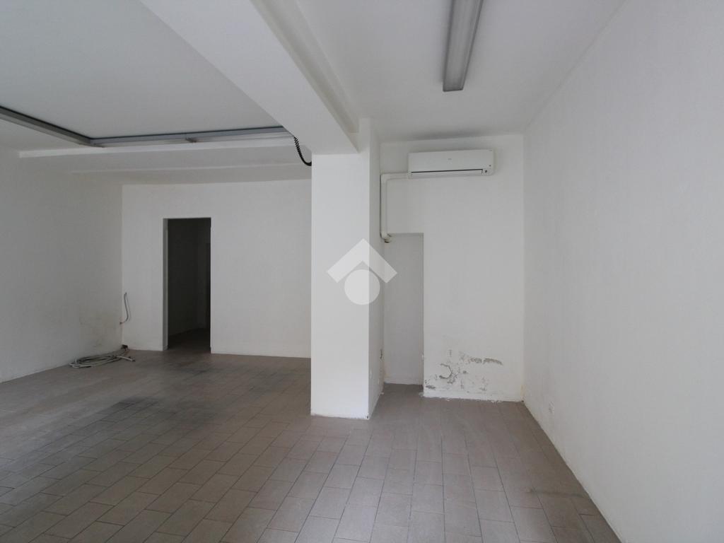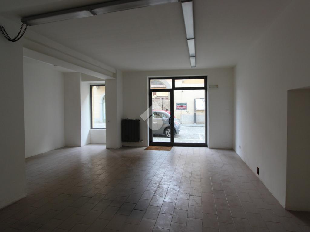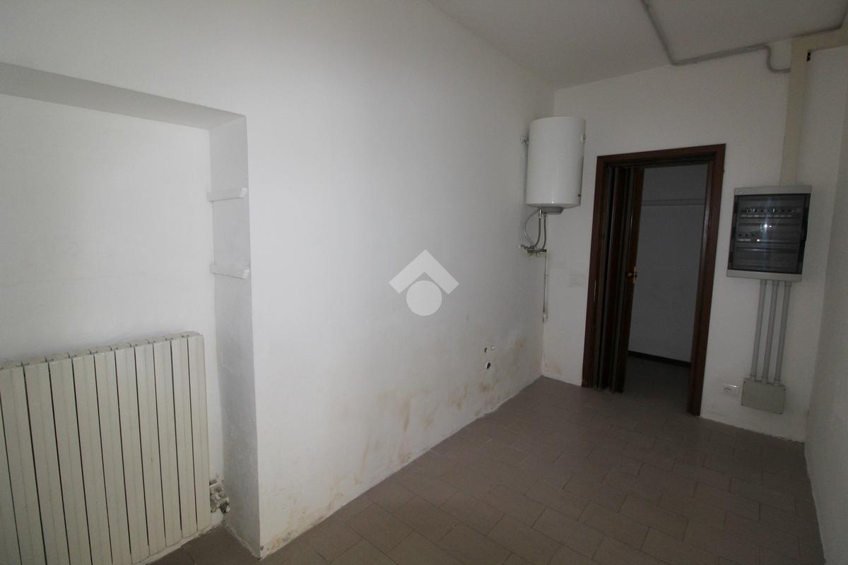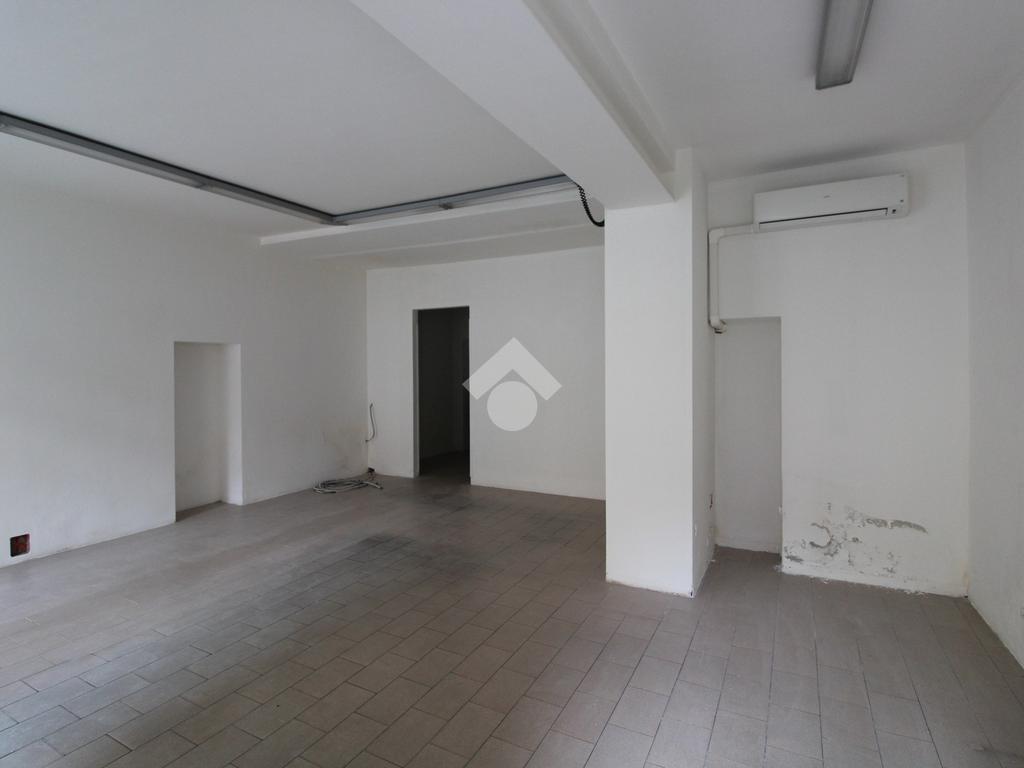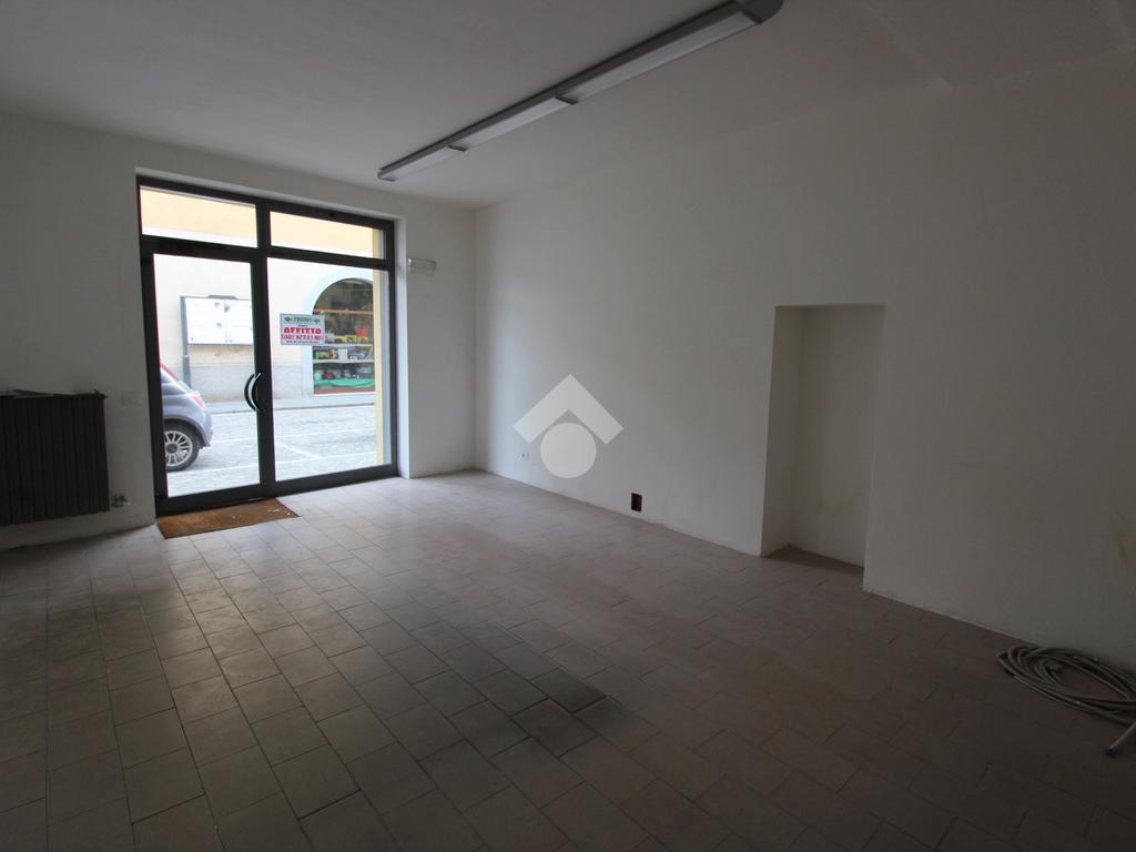 L'immobile si presenta con una vetrina dove è inserita la porta d'ingresso e con un'altro specchio espositivo posizionato accanto. Internamente la superficie della pianta è sviluppata in un unico grande ambiente dalla forma rettangolare, ampiamente sfruttabile. La soluzione è completa da un comodo locale adibito a magazzino e da un servizio igienico privato. L'ufficio è provvisto degli impianti elettrico, di illuminazione, di riscaldamento e la canna fumaria.
