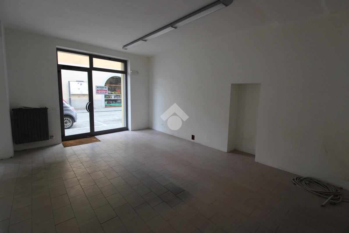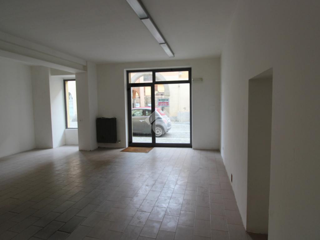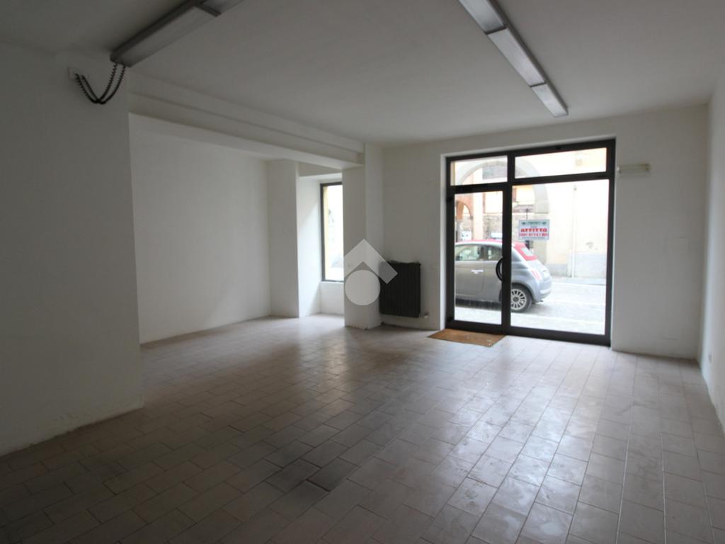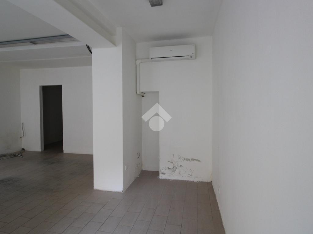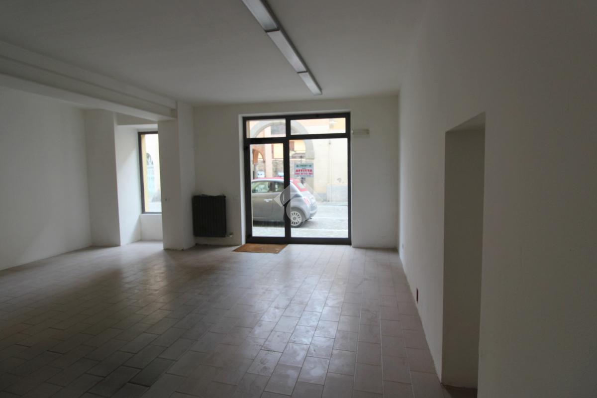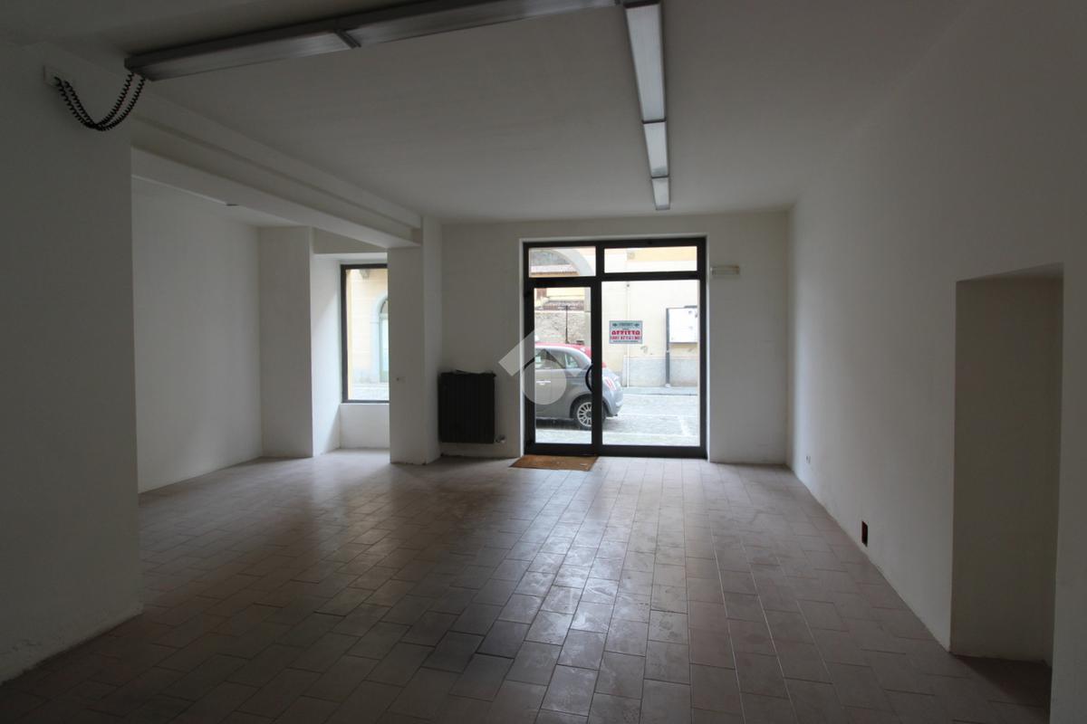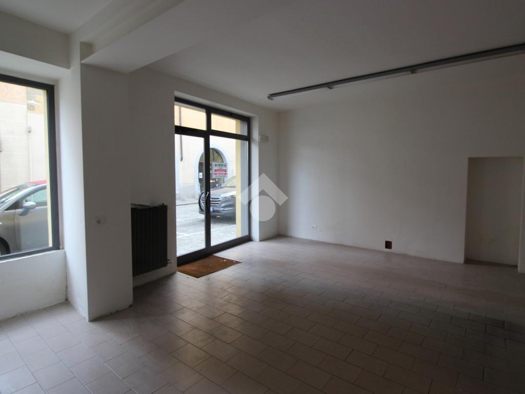 L'immobile si presenta con una vetrina dove è inserita la porta d'ingresso e con un'altro specchio espositivo posizionato accanto. Internamente la superficie della pianta è sviluppata in un unico grande ambiente dalla forma rettangolare, ampiamente sfruttabile. La soluzione è completa da un comodo locale adibito a magazzino e da un servizio igienico privato. L'ufficio è provvisto degli impianti elettrico, di illuminazione, di riscaldamento e la canna fumaria.