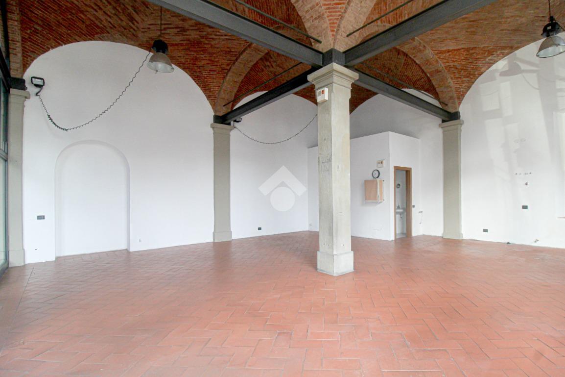 Proponiamo in locazione un locale commerciale di circa 100 metri quadrati, situato al piano terra di un edificio sviluppato su tre livelli.