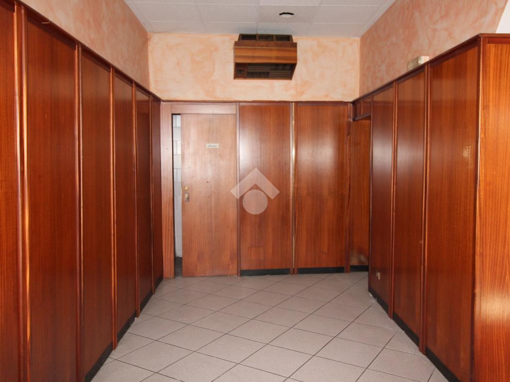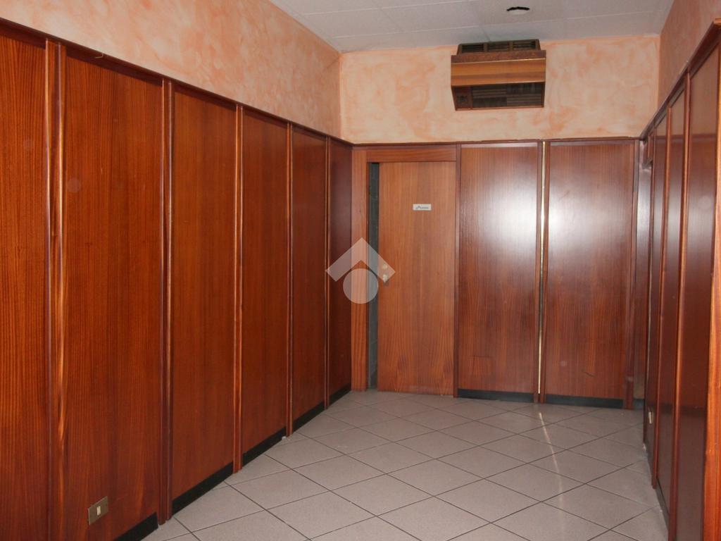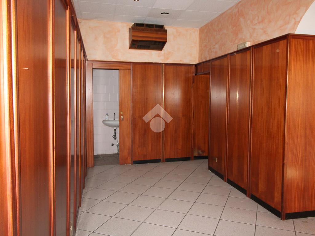 Proponiamo in locazione un ufficio di circa 90 metri quadrati situato al piano terra di un edificio commerciale di due piani.