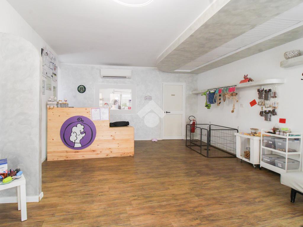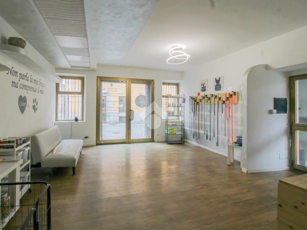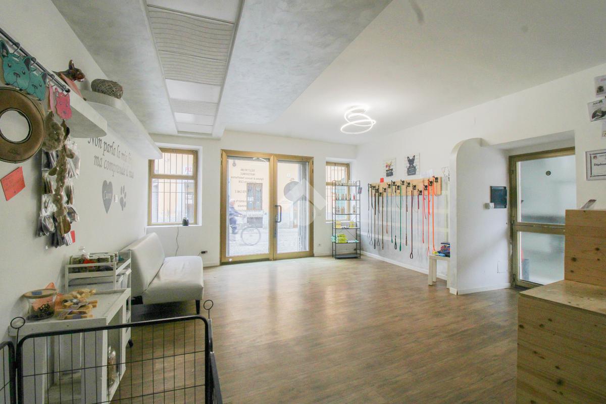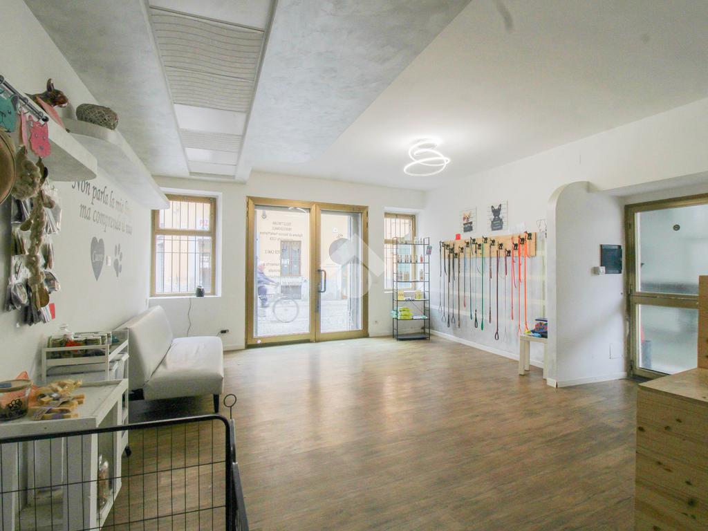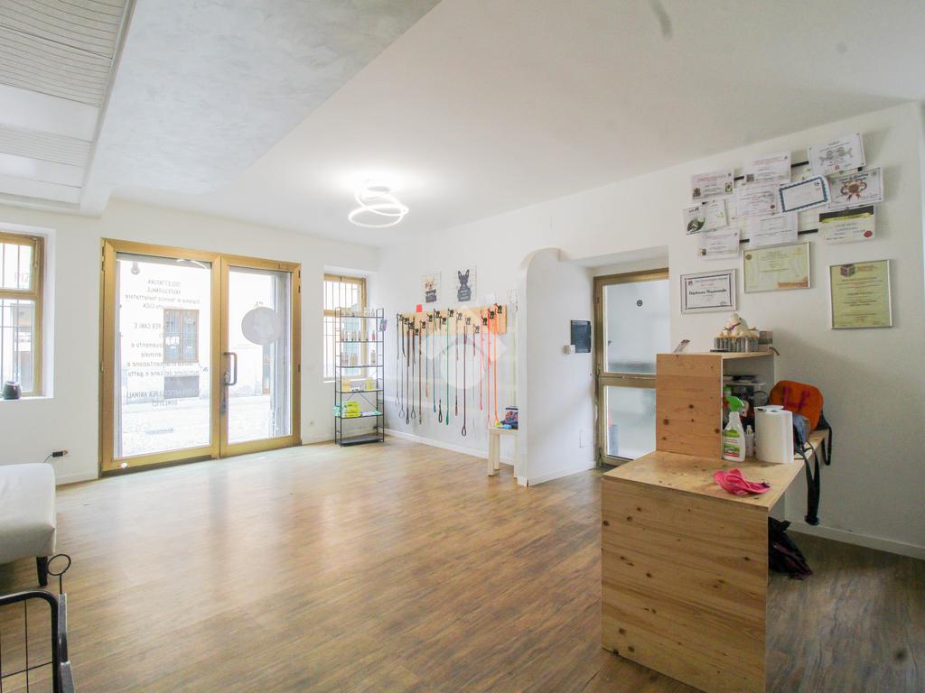 La soluzione proposta in locazione dispone di una superficie calpestabile di circa 65 metri quadrati che si presenta interamente disposta al piano terra. Lo spazio è suddiviso in tre locali, quello principale provvisto di un'ampia vetrina con affaccio su strada che dona luminosità all'ambiente e visibilità dall'esterno alla propria attività. L'immobile è provvisto degli impianti elettrico, di illuminazione e di riscaldamento/condizionamento ad aria; è inoltre presente un servizio igienico privato. Vi è inoltre la possibilità di realizzare una canna fumaria necessaria allo svolgimento delle attività di ristorazione.