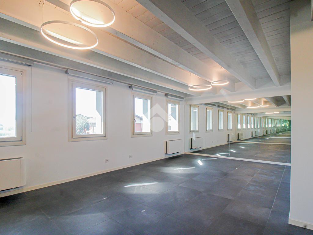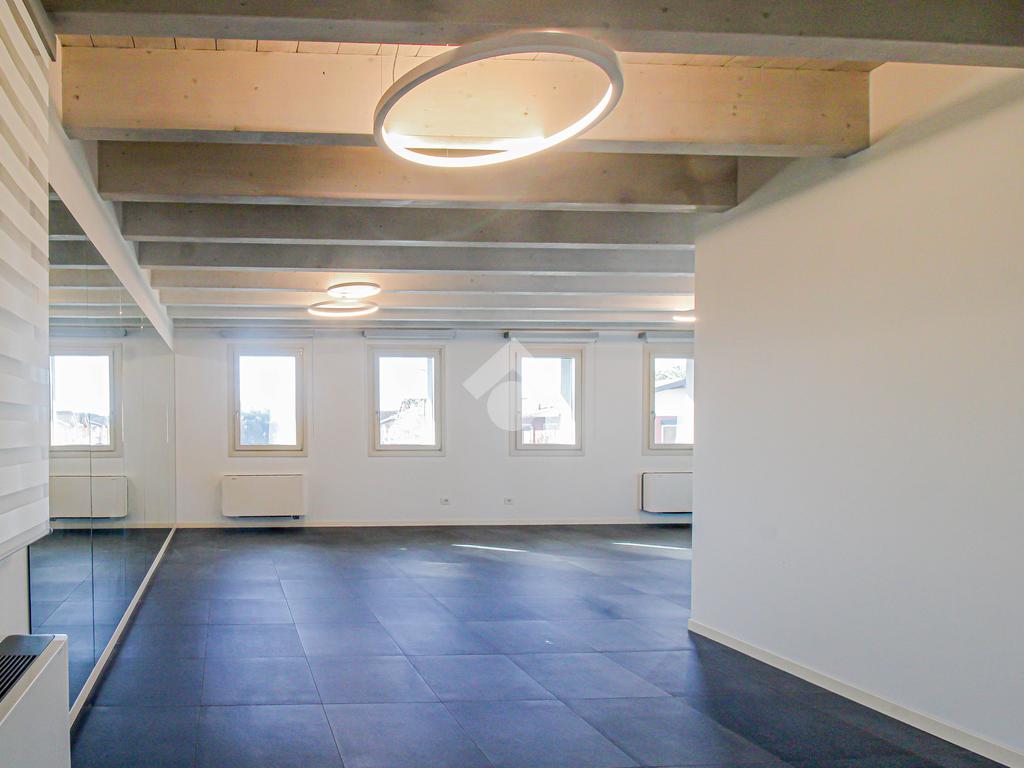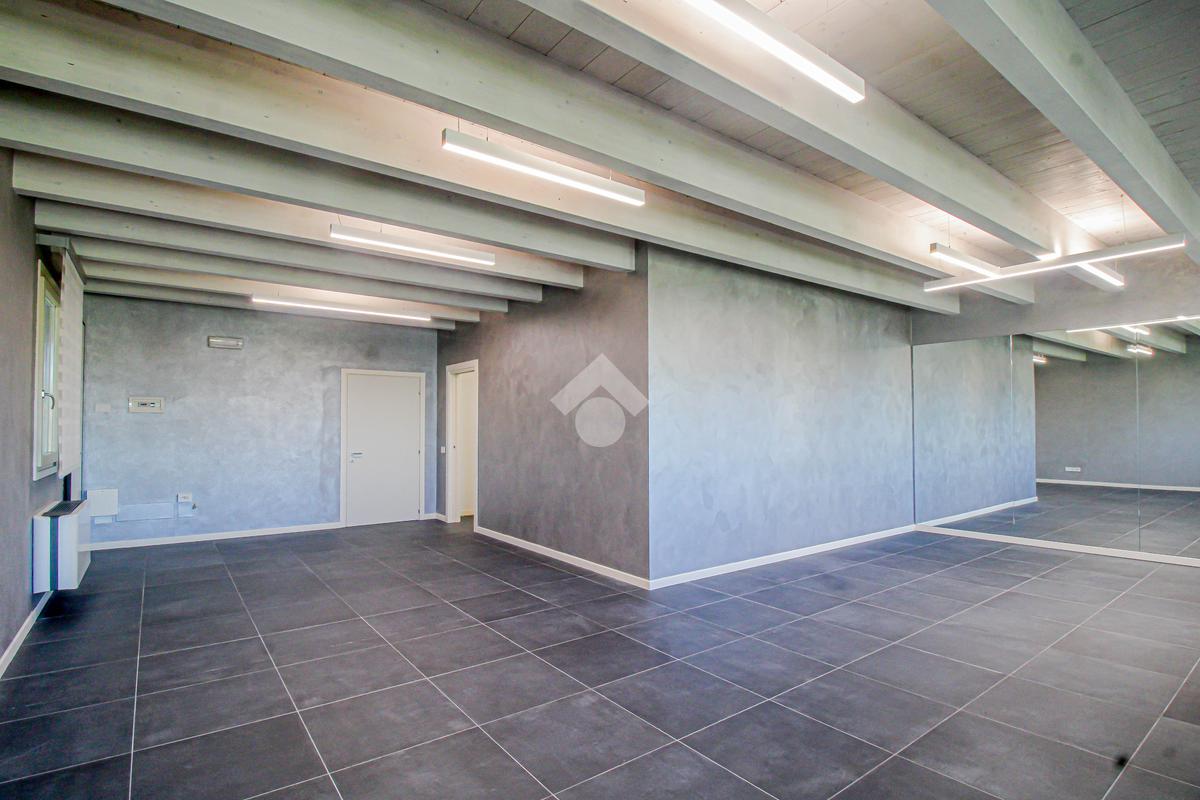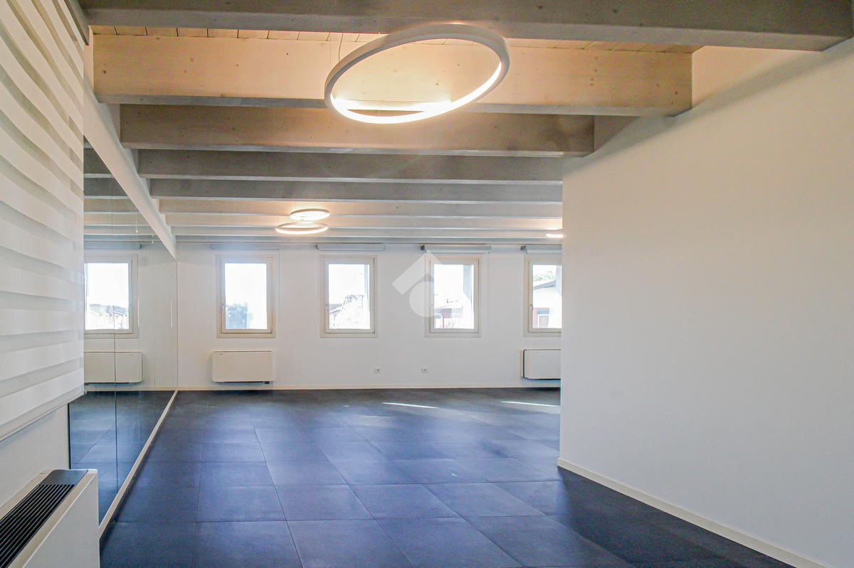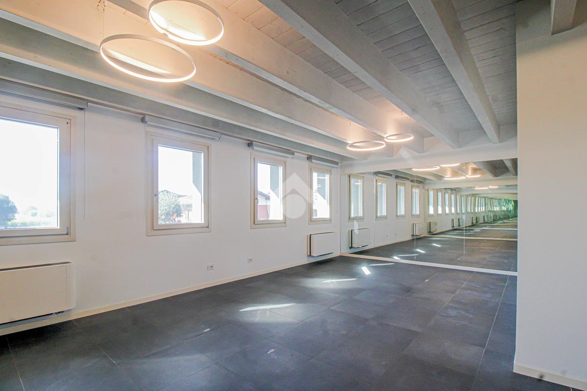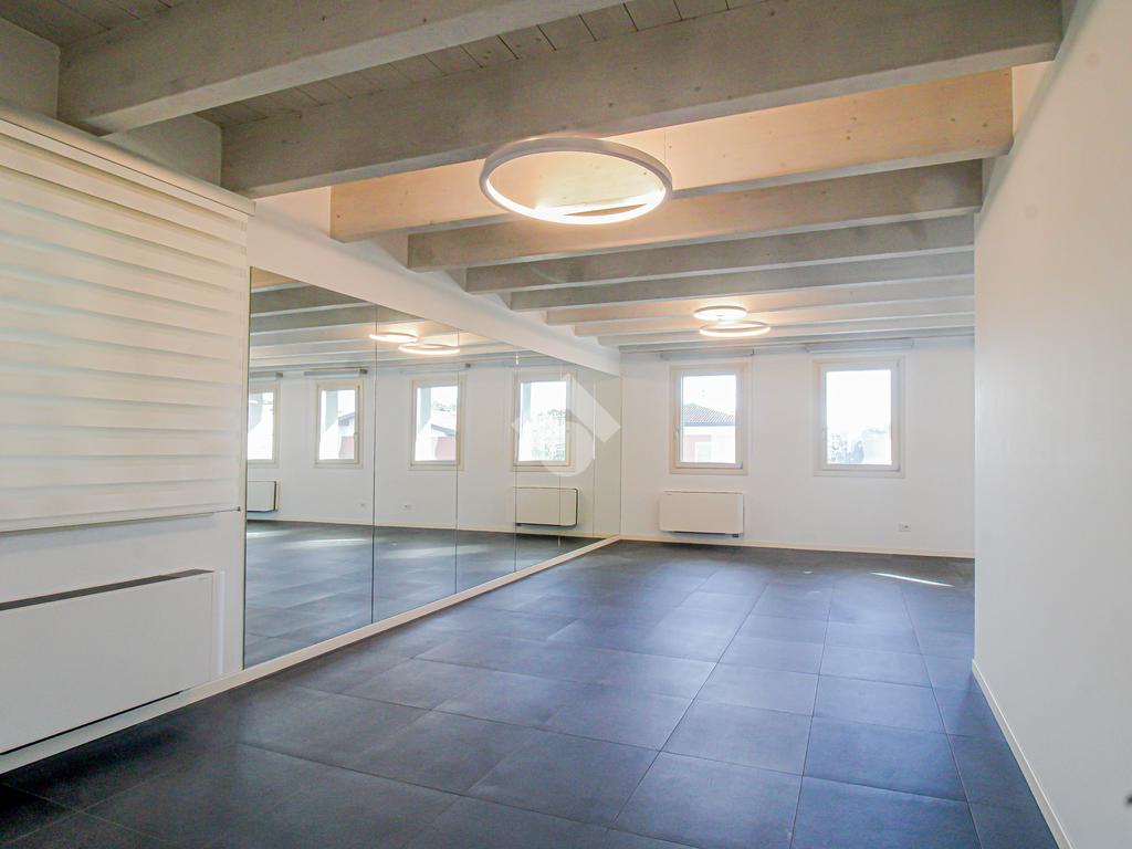 La soluzione proposta in locazione dispone di una superficie di circa 130 metri quadrati interamente disposta al piano primo. Lo spazio si presenta suddiviso in due stanze. L’immobile è completo degli impianti elettrico, di illuminazione, di riscaldamento e di condizionamento; sono inoltre presenti due servizi igienici privati.
