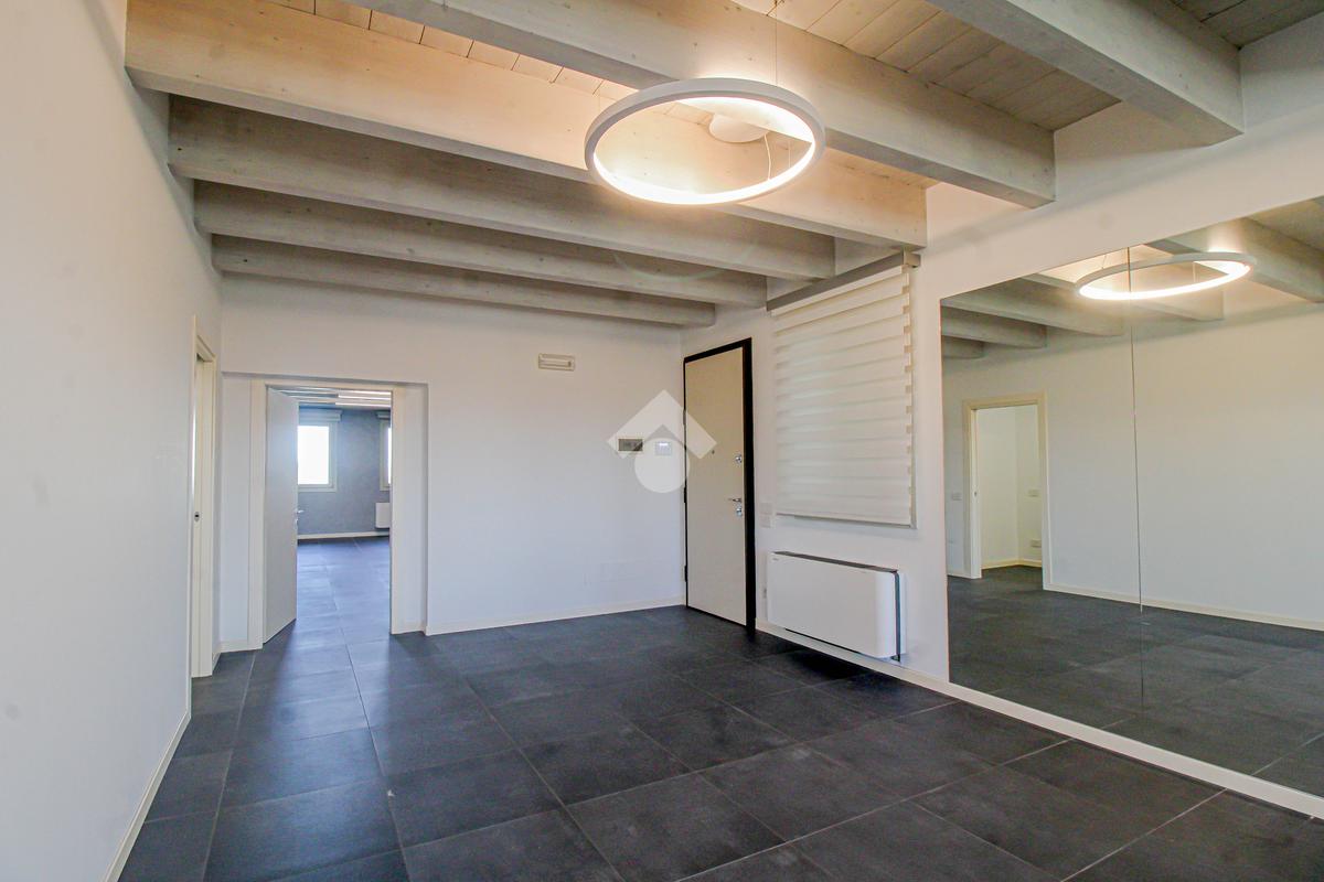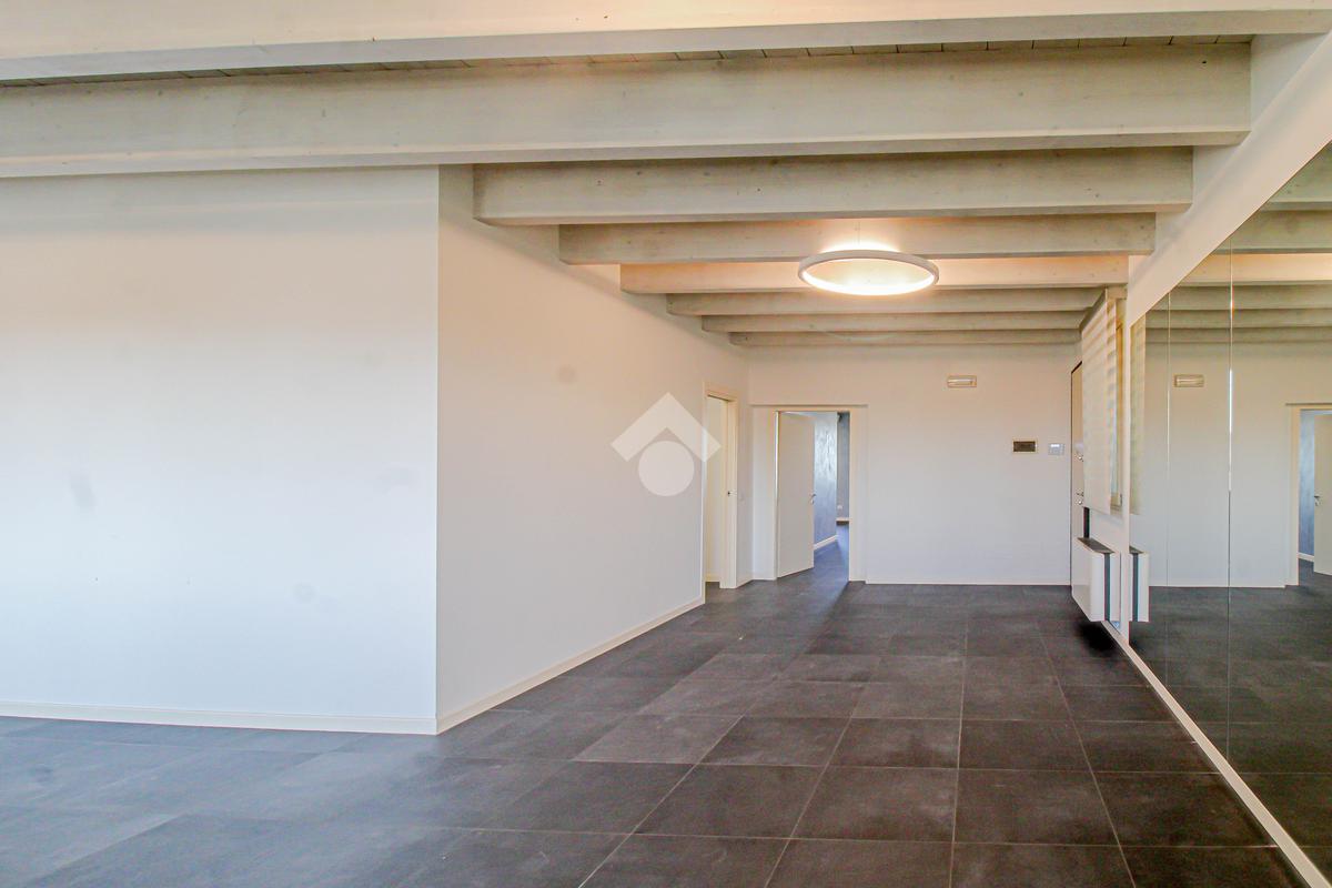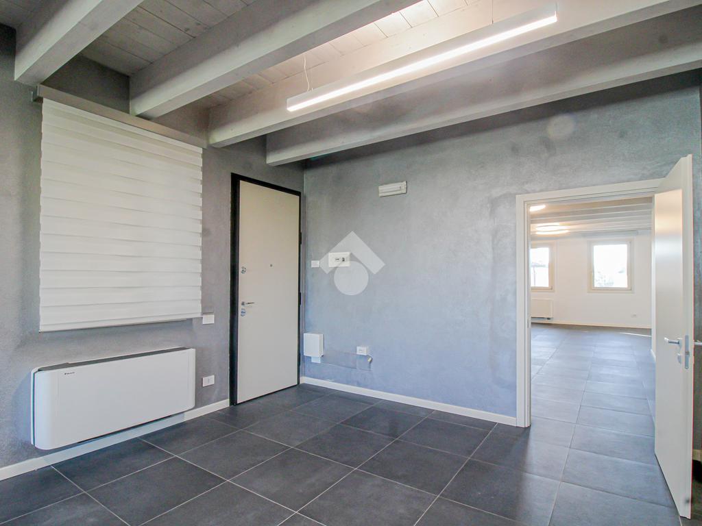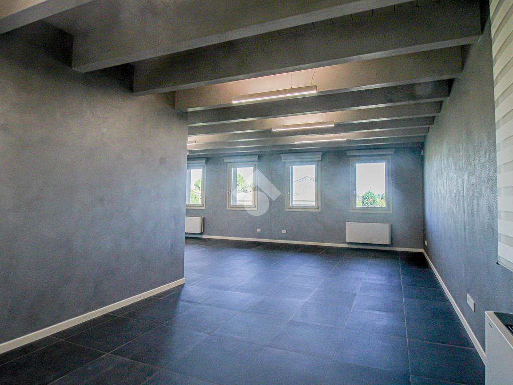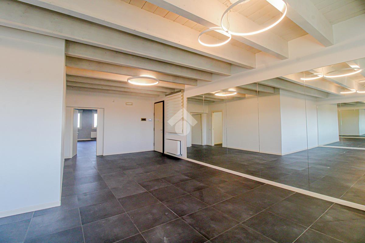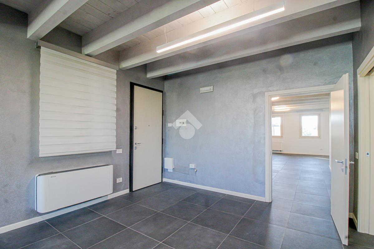 La soluzione proposta in locazione dispone di una superficie di circa 130 metri quadrati interamente disposta al piano primo. Lo spazio si presenta suddiviso in due stanze. L’immobile è completo degli impianti elettrico, di illuminazione, di riscaldamento e di condizionamento; sono inoltre presenti due servizi igienici privati.