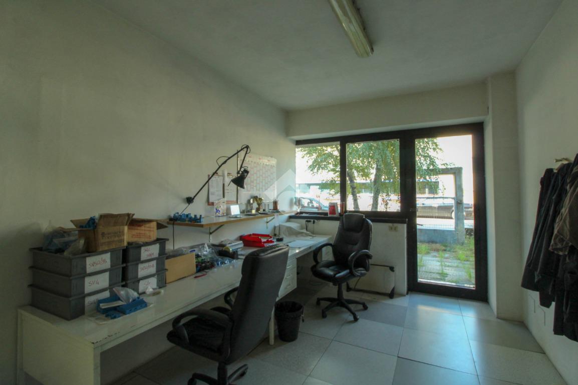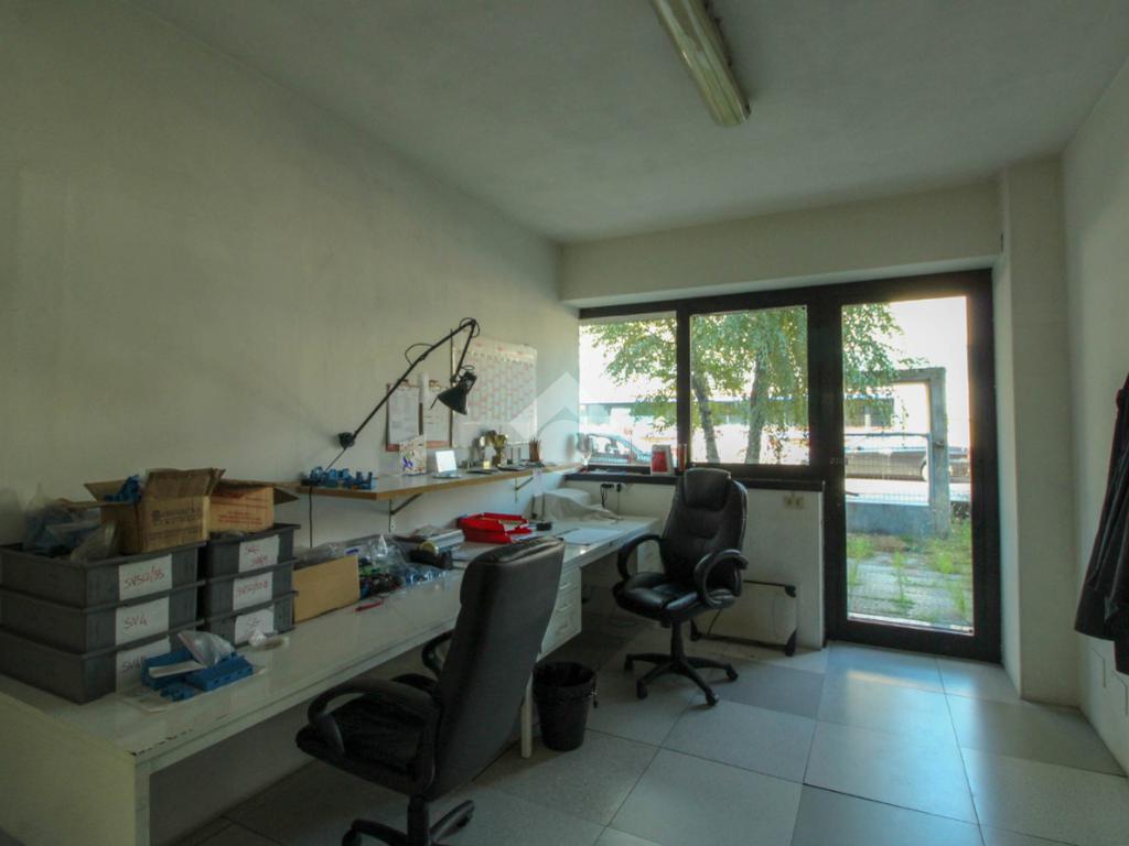Il capannone di 550 metri quadrati, si sviluppa interamente al piano terra e si presenta come un ambiente open space privo di pilastri, con un’altezza interna di 5,50 metri. L’accesso avviene tramite un portone con altezza utile di 4,50 metri, oltre ad un accesso carraio. Gli uffici, per un totale di circa 100 mq, sono suddivisi tra 50 mq al piano terra e 50 mq al piano primo, direttamente collegati al capannone. L’immobile è dotato di impianto elettrico, impianto di illuminazione, riscaldamento e condizionamento caldo/freddo, oltre alla predisposizione per impianto d’allarme. È inoltre presente un servizio igienico privato con spogliatoi. Completano la soluzione 120 mq di area esterna esclusiva.