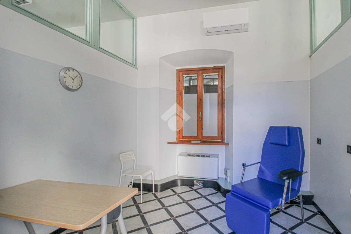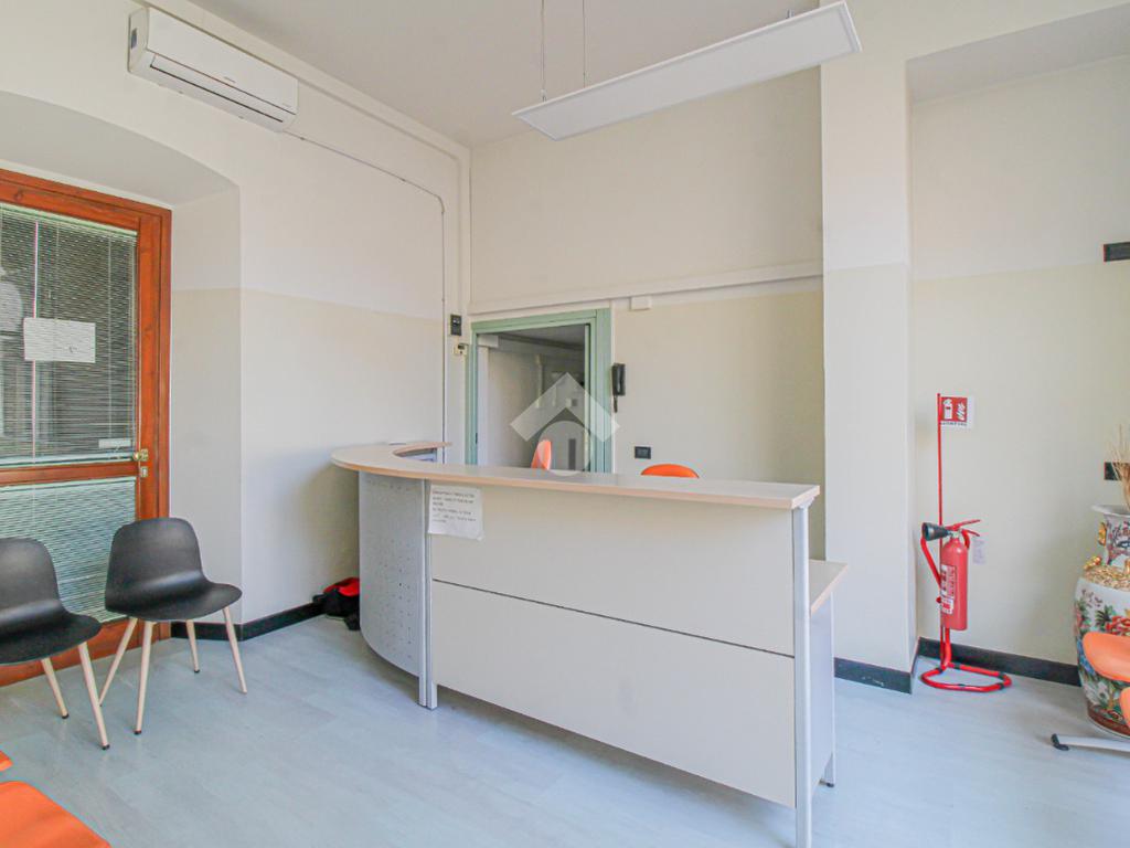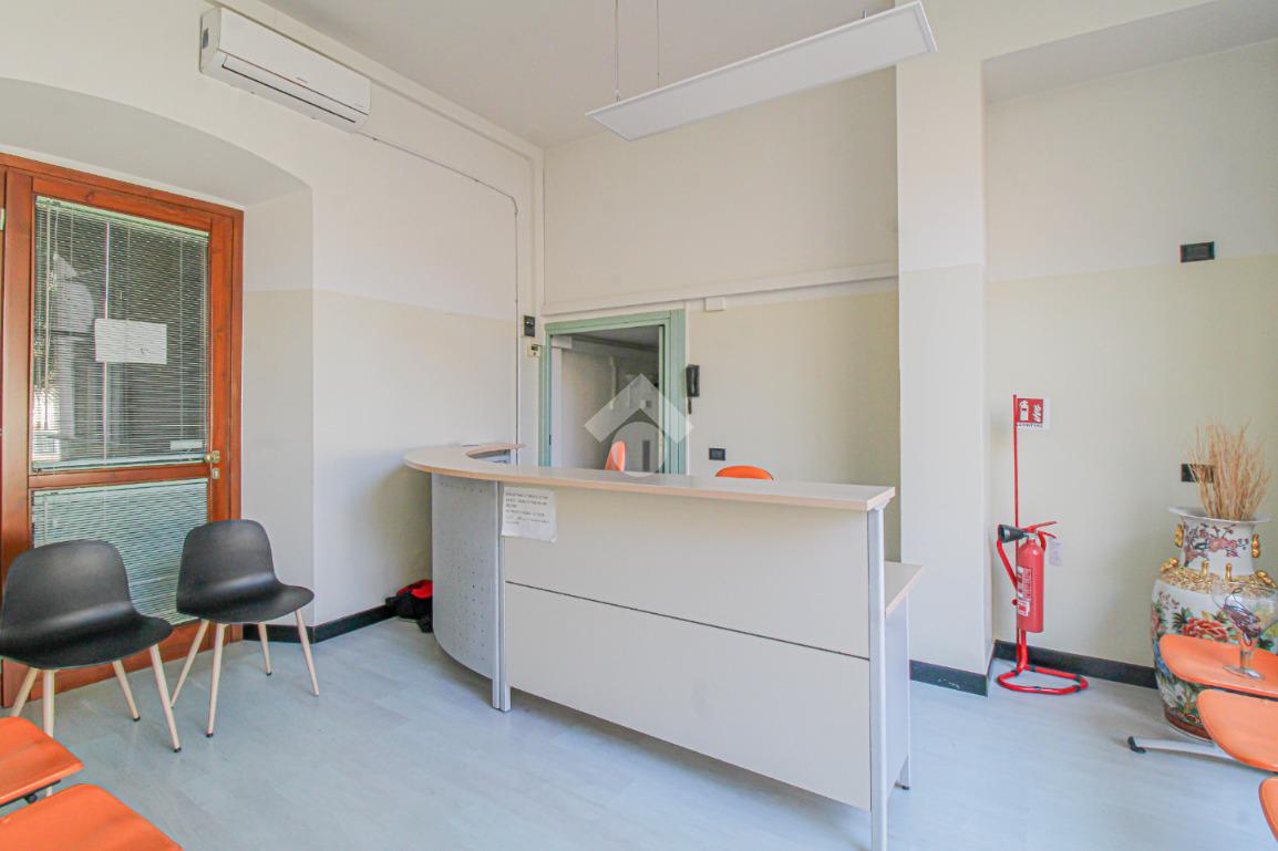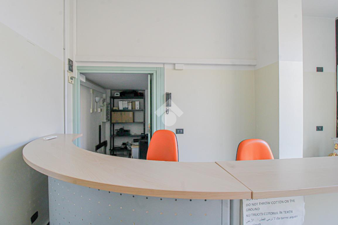 Proponiamo in locazione un negozio di circa 130 metri quadrati, situato al piano terra di un edificio di tre piani.