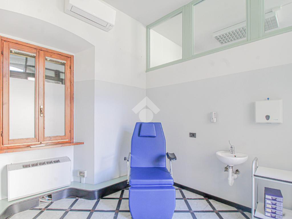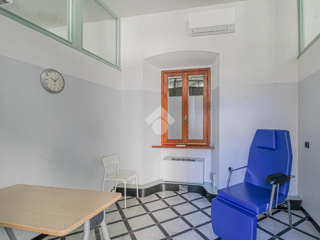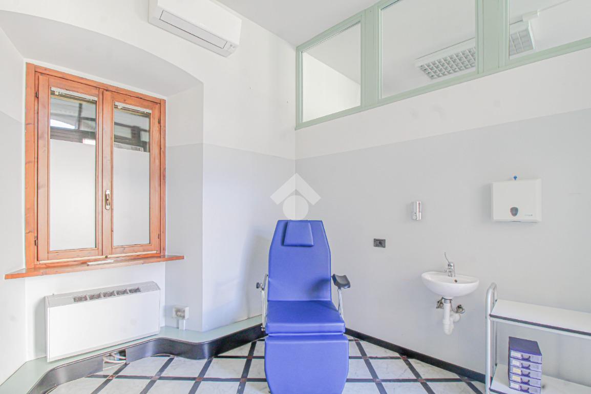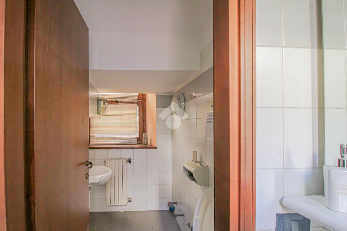 Proponiamo in locazione un negozio di circa 130 metri quadrati, situato al piano terra di un edificio di tre piani.
