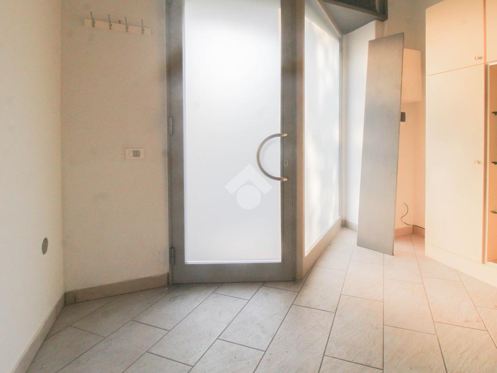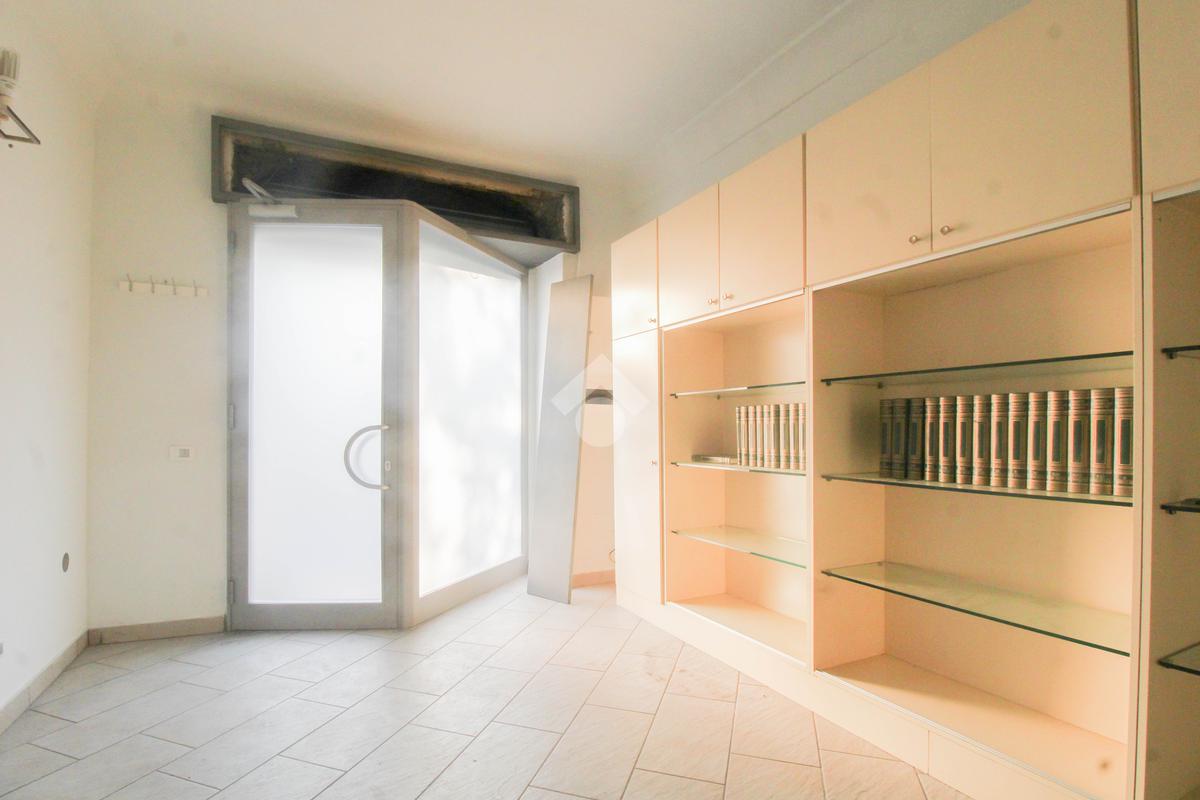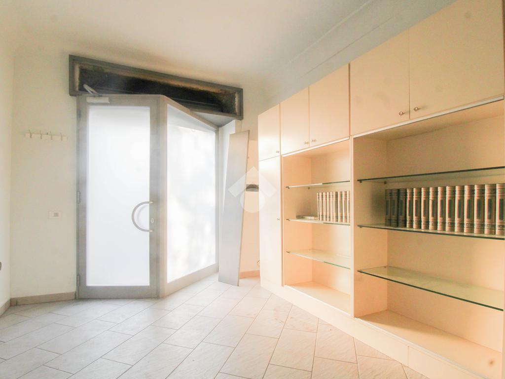 Proponiamo in locazione un ufficio di circa 45 metri quadrati situato al piano terra di un edificio di due piani.