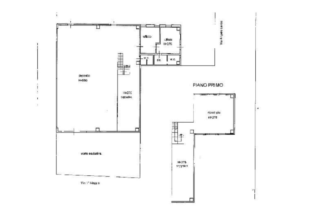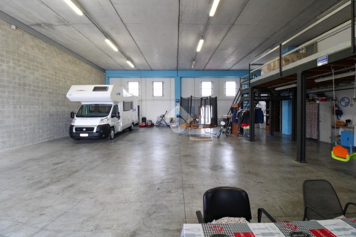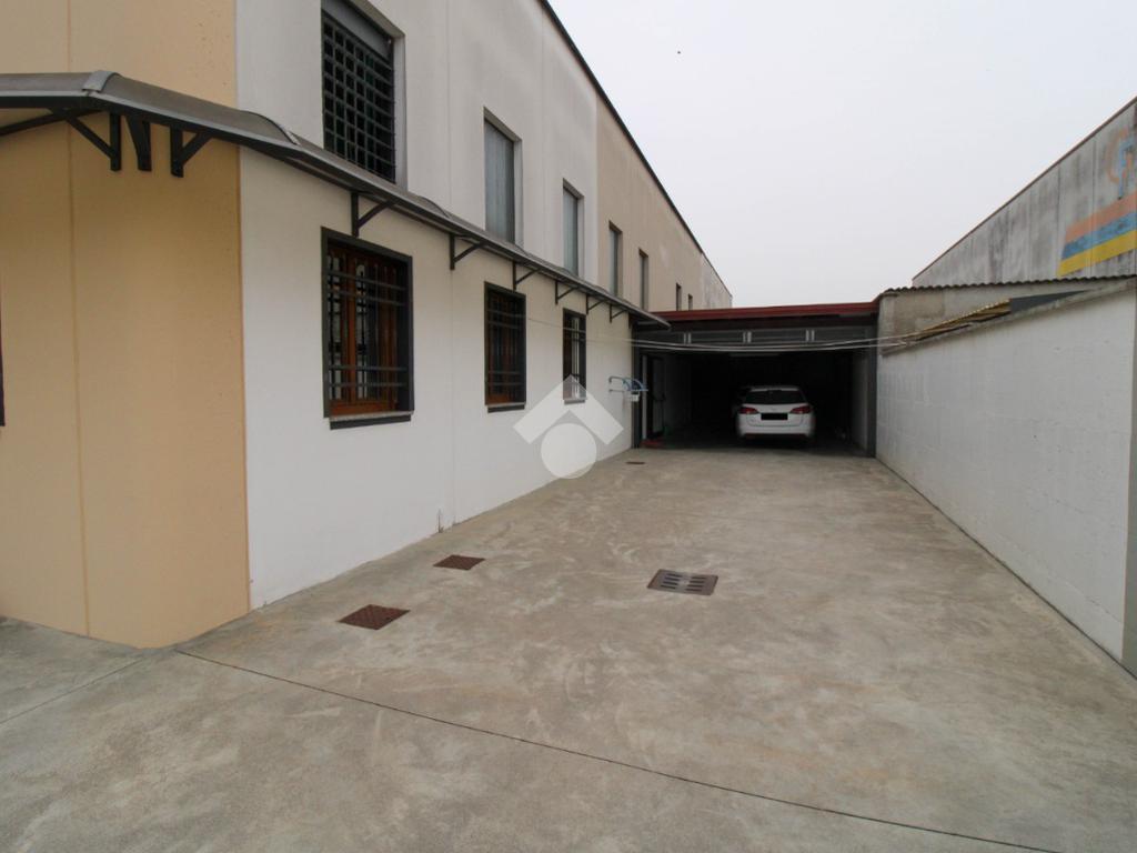 La soluzione proposta in vendita dispone di una superficie coperta complessiva di circa 550 metri quadrati suddivisi in 300 mq di capannone industriale (di cui 150 mq attualmente affittati e venduti a reddito), 30 metri quadrati di uffici e 220 metri quadrati di abitazione. La proprietà si presenta recintata e dotata in tutto di due accessi carrai che si aprono sull'area esterna privata di 150 metri quadrati circa. Allo spazio interno del capannone si accede tramite un portone di 4 metri che consente l'ingresso a mezzi di medio/grandi dimensioni, alcuni dei quali riescono tranquillamente a muoversi anche al coperto per la completa assenza di pilastri portanti; l'ambiente raggiunge un'altezza massima di 6 metri (5.5 metri sotto trave). L'immobile è completo degli impianti elettrico (220 kw), di illuminazione e dei sensori di movimento per il sistema di allarme; l'impianto di condizionamento caldo/freddo dell'aria sono invece presenti unicamente negli uffici. L'abitazione è posizionata sulla parte frontale del complesso e si sviluppa su due piani; gli uffici si trovano invece in una struttura indipendente dotata di un ulteriore servizio igienico privato oltre a quello del capannone.