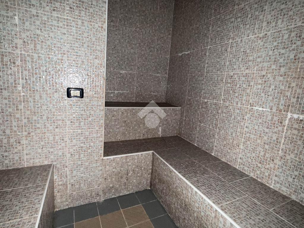 La soluzione in locazione dispone di una superficie calpestabile di circa 510 metri quadrati. Lo spazio al piano interrato è diviso in cinque locali con diversi disimpegni. L'immobile è provvisto degli impianti elettrico, di illuminazione, di riscaldamento e di condizionamento ad aria; sono inoltre presenti nove servizi igienici privati, alcuni a norma disabili, con antibagno.